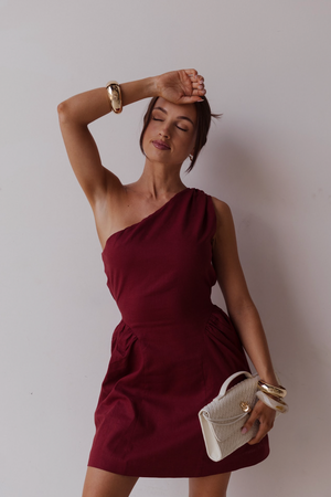 Burgundy De Sol Linen Mini Dress