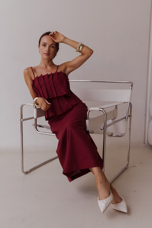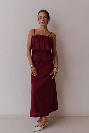 Burgundy Limoncello Linen Maxi Dress