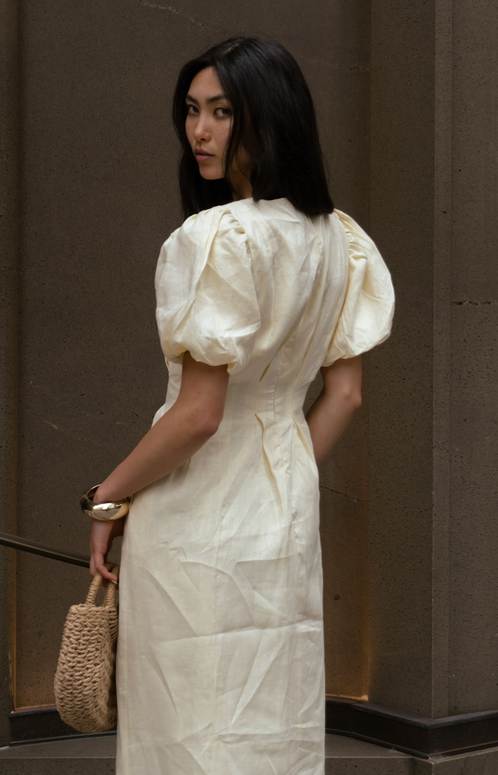 Introducing AIR. A blend of comfort and elegance. Crafted from a premium, breathable linen fabric, it boasts puffed sleeves, a beautiful waist detail front & back, and a flattering maxi length. Fully lined with an invisible back zip for easy wear, this dress is ideal for any occasion. And yes - it has pockets because we know what matters to you.