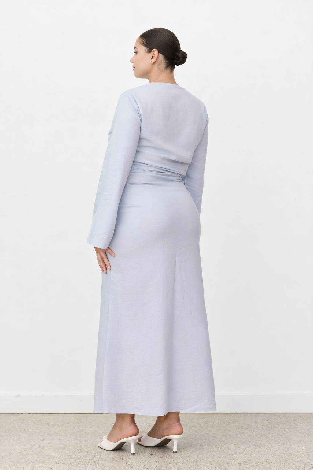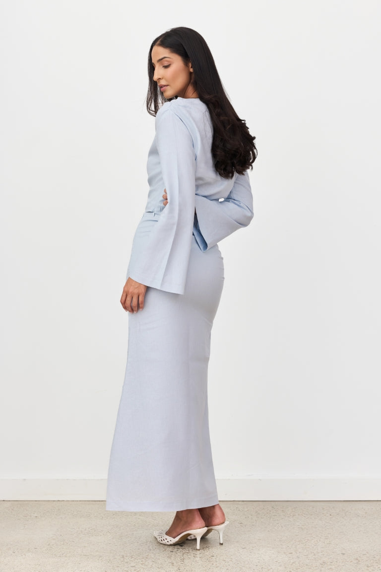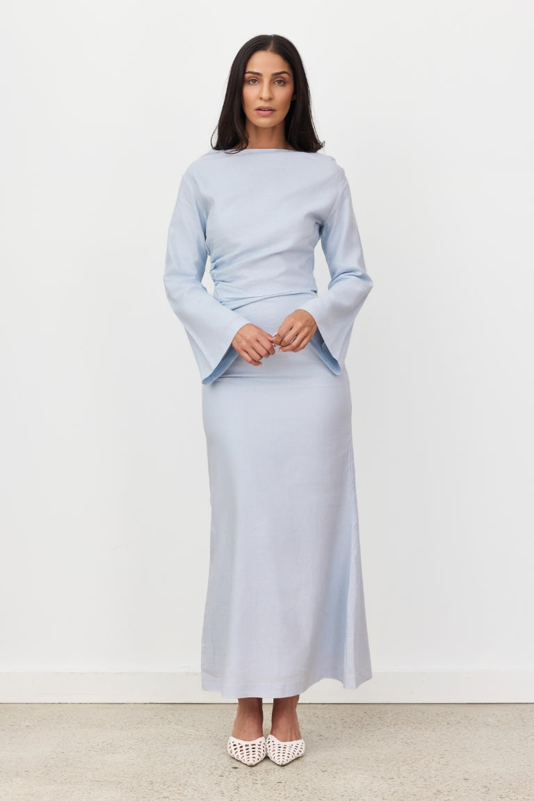 The Celeste Skirt is a timeless linen blend maxi designed with considered detailing and an elegant, elongated silhouette. Featuring soft side ruching to enhance the shape, it is fully lined for comfort and ease of wear. An invisible side zip ensures a smooth, streamlined finish.