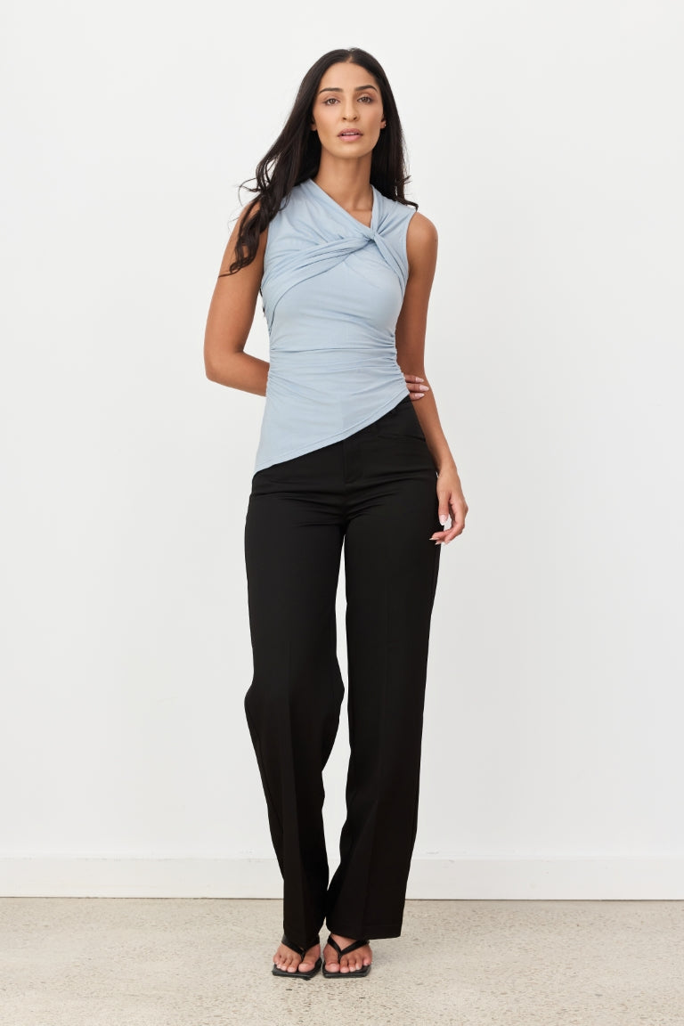 Sky Blue Lune Asymmetrical Sleeveless Top
